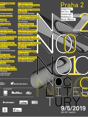 Literární happening Noc literatury se uskuteční v Praze 2. Již po třinácté se představí současná literatura, netradiční místa i známé herecké osobnosti. V roce 2019 ve spolupráci s městskou částí Praha 2. Devatenáctka v letopočtu je pro tento ročník symbolická: 19 herců bude číst na 19 místech ukázky z 19 zahraničních knih v nových překladech. Rok 2019 je také rokem několika výročí a to hlavní, 30 let od Sametové revoluce, inspirovalo letošní Noc literatury při výběru čtecích míst, která částečně kopírují trasu studentské demonstrace 17. listopadu 1989.