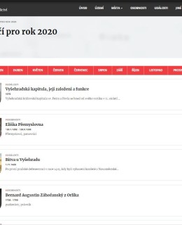 Rok po svém spuštění umožnila Encyklopedie Prahy 2 sledovat kalendář se zajímavými výročími připadajícími téměř na každý den v měsící. Novinkou od konce roku je však přehled kulatých výročí (události, narození, úmrtí, založení apod.). Naleznete jej po zobrazení úplného přehledu a kliknutí na tlačítko Kulatá výročí vpravo vedle seznamu měsíců, tedy vedle prosince. Nebo použijte odkaz encyklopedie.praha2.cz/vyroci/round.