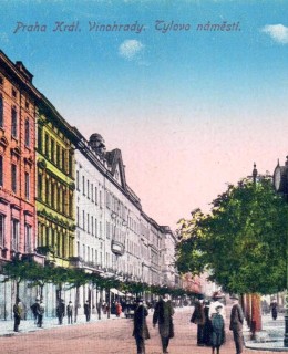 Trh na Tylově náměstí byl pro svoji dostupnost a polohu na křižovatce linek elektrické dráhy oblíben také v období první republiky, i když ani v této době jeho stav nebyl zdaleka ideální. Začátkem dvacátých let došlo spíše ke kosmetickým úpravám tržiště: „Úprava trhových stánků na Tylově náměstí provádí se jednotně na útraty trhovců. Úprava ta spočívá ve správce zvetšelých stánků a v přístavbě krytu na straně chodníkové. Je to úprava ovšem zcela nedostatečná.“ Na podzim roku 1920 se alespoň zlepšilo osvětlení trhu: „Steskům vinohradských trhovců na nedostatek osvětlování tržiště na Tylově náměstí vyhověla městská rada tím, že nařídila, aby se vždy ráno a v sobotu večer tržištní světla rozžíhala.“ Hygienické podmínky na tržišti zůstávaly primitivní i ve dvacátých letech: „Vinohradské trhovce znovu upozorňuje zdejší městská úřadovna, že vykládání zboží na holé zemi, na látkách a prknech nečistých, dále přikrývání zboží nečistými přikrývkami a jakékoliv ohmatávání zboží jak prodávajícími, tak obecenstvem, je co nejpřísněji zakázáno.“ Zlepšit hygienické poměry mělo i následující opatření, ovšem je otázkou nakolik se toto nařízení v praxi dodržovalo: „Vymetati komíny v okolí vinohradských tržišť dovoleno jest napříště kvůli zdravotní ochraně vyloženého zboží až po 14. hodině odpolední.“ Větších úprav, které navazovaly na předválečné plány, se tržiště dočkalo v průběhu dvacátých let, kdy byly vybudovány nové podzemní toalety při ulici Rumunská, kam byla také přestěhována obecní váha: „Nový záchod je moderní, podzemní, ale nevyniká ani prostorností, ani ventilačním zařízením. Za to vyniká cenou. Nad záchodem nachází se nová váha a místnost pro tržní stráž.“ V příštím střípku již zavítáme do městské tržnice, jejíž vybudování s trhem na Tylově náměstí velmi úzce souvisí.